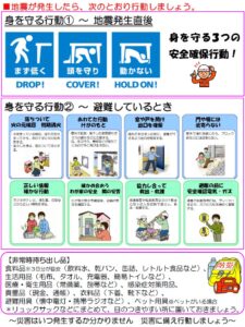 3.低い姿勢で、頭を守った状態で、揺れが収まるまで「動かない」